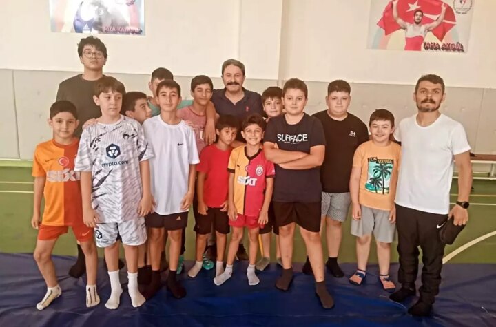 Eskişehir Gençlik ve Spor Vilayet Müdürü Hasan Kalın, genç güreşçilerle bir ortaya gelerek spor...