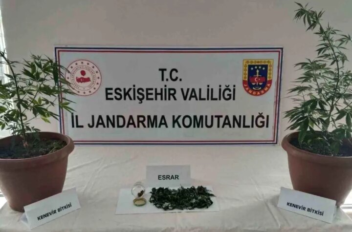 Eskişehir'de jandarma takımları tarafından yapılan operasyonda bir konutun balkonunda 2 kök kenevir bitkisi ve...