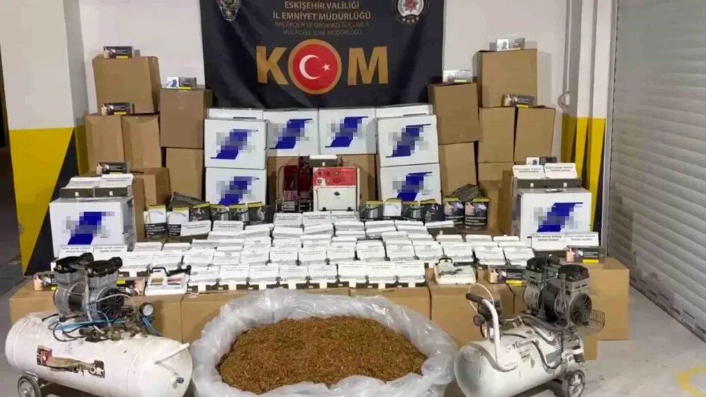 İl Emniyet Müdürlüğü Kaçakçılık ve Organize Suçlarla Mücadele Şube Müdürlüğü (KOM) görevlilerince halk sıhhatinin korunması ve haksız yararın engellenmesi gayesi ile operasyon düzenlendi. “Merdiven altı” diye tabir edilen yerlerde üretilen kaçak tütün ve tütün mamullerini piyasaya sürmeye çalışan şahıslara yönelik çalışmalar yapıldı. Bu çalışmalar sonucunda, 250 bin kısım boş makaron, 54 bin 600 kol doldurulumuş makaron, 315 kilogram tütün, 3 adet sigara sarma makinesi ve 2 adet kompresör ele geçirildi. – ESKİŞEHİR