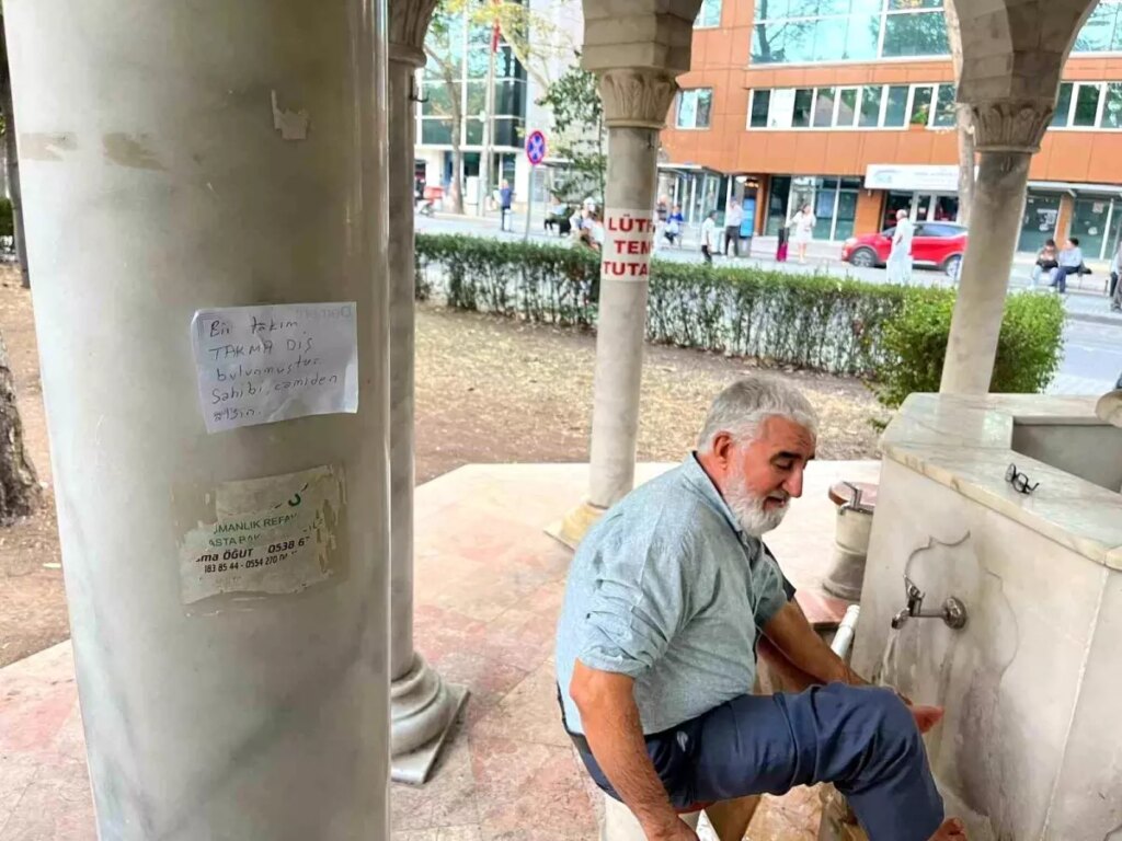 Eskişehir’de bir şadırvanda unutulan protez dişler için mescide asılan “Şadırvanda takma diş bulunmuştur” yazısı dikkat çekti.