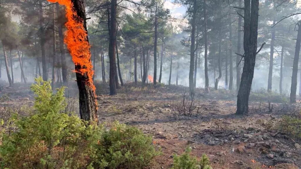 Yangından yaklaşık 8 dekar ormanlık alanın ziyan gördüğü bildirildi. – KÜTAHYA
