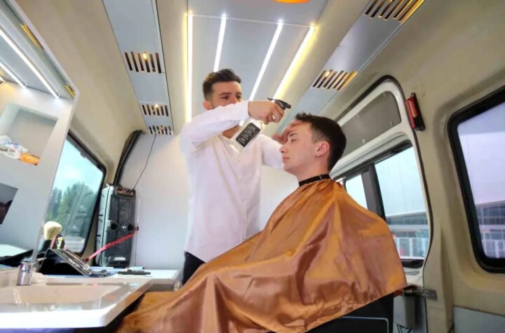 Eskişehirli berber Caner Yıldırım, 1 milyon 250 bin TL harcayarak oluşturduğu minibüs ile seyyar...