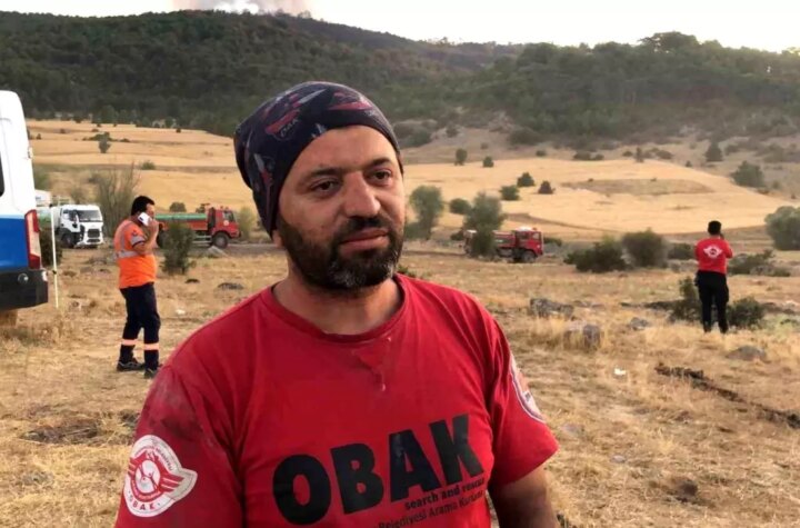 Odunpazarı Arama Kurtarma (OBAK) Ekip Lideri Ercan Temel, Eskişehir'in Seyitgazi ilçesinde çıkan orman yangınında...