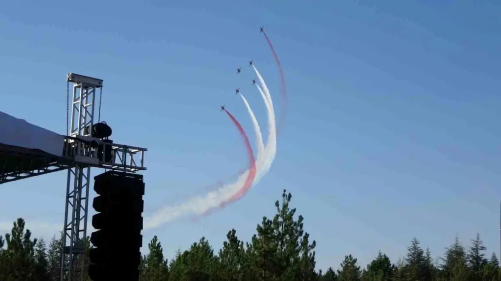 Konya 3. Ana Jet Üs Komutanlığı’nda konuşlu Türk Yıldızları’nın gösterisini izlemek için Kütahya ve Afyonkarahisar’dan binlerce vatandaş merasim alanını doldurdu. Gösteriyi Gençlik ve Spor Bakanı Osman Aşkın Bak da takip etti. Nefesleri kesen akrobasi uçuşları büyük ilgiyle izlenirken, vatandaşlar o anları cep telefonlarıyla kaydetti. Türk Yıldızları Kumandanı ise alanı dolduran kalabalığın 30 Ağustos Zafer Bayramı’nı kutladı. – KÜTAHYA
